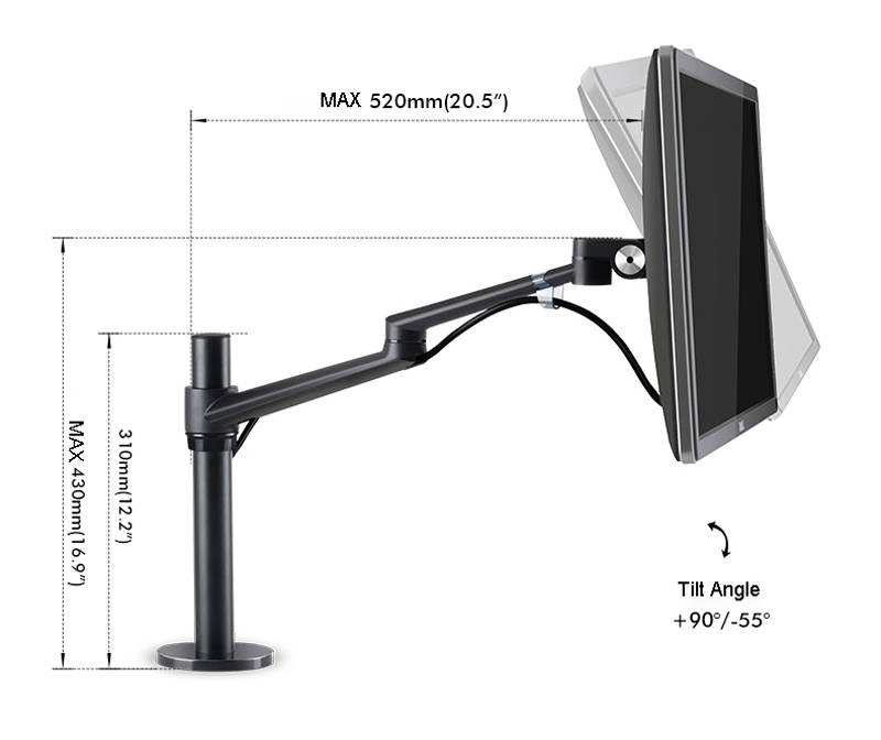 Aluminum Height Adjustable Desktop Dual Arm 17-32 inch Monitor Holder+12-17 inch L... (COLOR: BLACK)