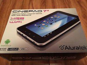 Outfitted with a Texas Instruments ARM Cortex A8 1 GHz processor and Google's Android 4.0 Ice Cream Sandwich operating system, the Aluratek 4GB Cinepad 7" Capacitive Tablet is an amalgam of high-end processing power, user-friendly control and universal affordability. Plus, unlike similarly-priced tablets with resistive touch panels, the Cinepad is adorned with a 7" capacitive TFT LCD multi-touch screen. It features 512MB of DDR2 RAM memory as well.