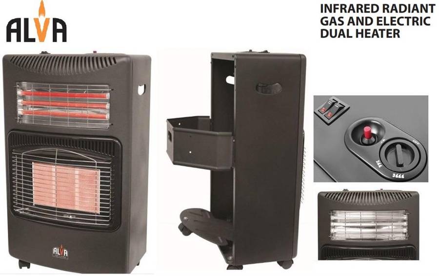 The Alva 3 Panel Dual Infrared Radiant Gas and Electric Indoor Heater GH309 offers instant heat without drying the air and energy-saving infrared convection heating. This gas heater features 3 Ceramic panels, 3 heat settings and swivel castors for easy movement as well as 2 Translucent infrared silicon tubes, 3 heat settings on the electrical side of the heater.