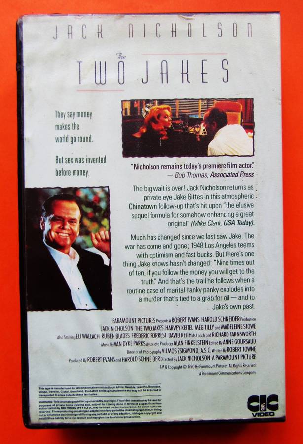 The Two Jakes - Jack Nicholson - Movie VHS Tape (1990) The Two Jakes - Jack Nicholson - Movie VHS Tape (1990) The Two Jakes - Jack Nicholson - Movie VHS Tape (1990)