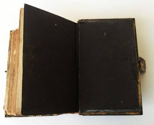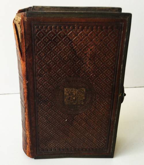 Hi there, this is a beautiful little book! The engraving in the leather and detail is simply incredible! Just look at the tiny detail in the cover! The book also has a stunning brass clasp! Overall this is a high quality book and is most likely mid 1800's! The book is in fair condition with some ware relating to its obvious age! Secure postage for the book is R80, please only serious bidders, Good Luck!!