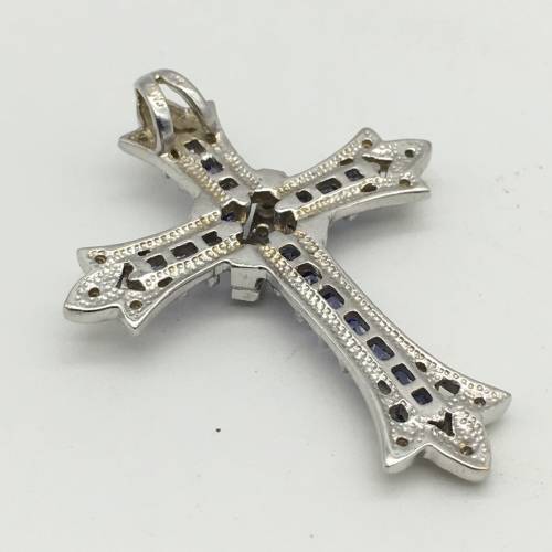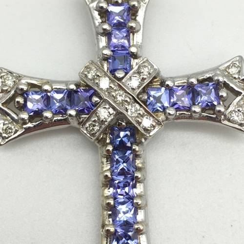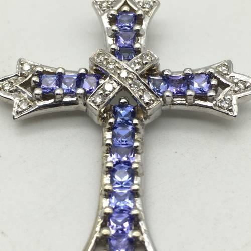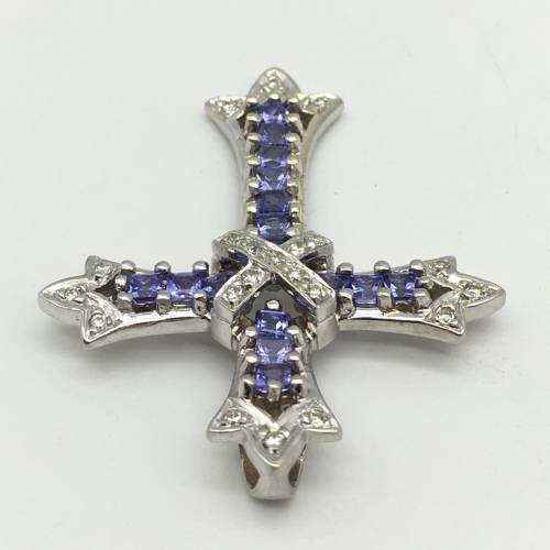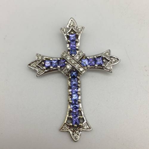 Amazing 9ct White Gold, Diamond & Tanzanite Cross