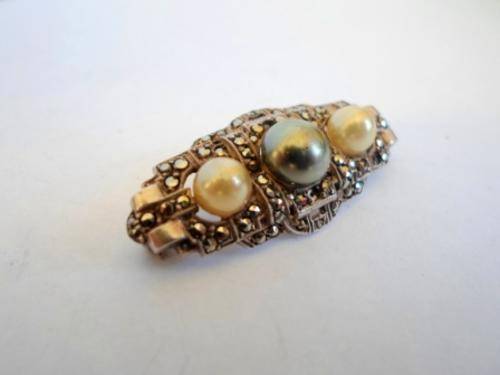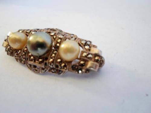 MEASURES 39mm X 17mm CENTER PEARL = 8mm 2 X OTHER = 6mm EACH