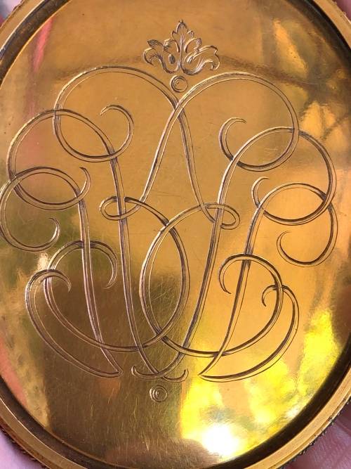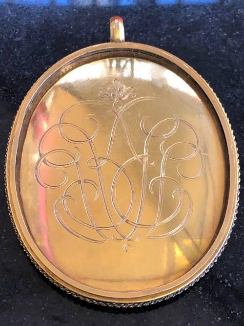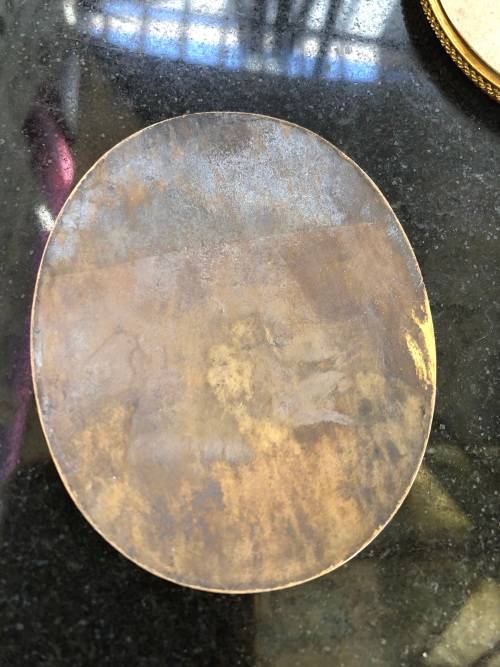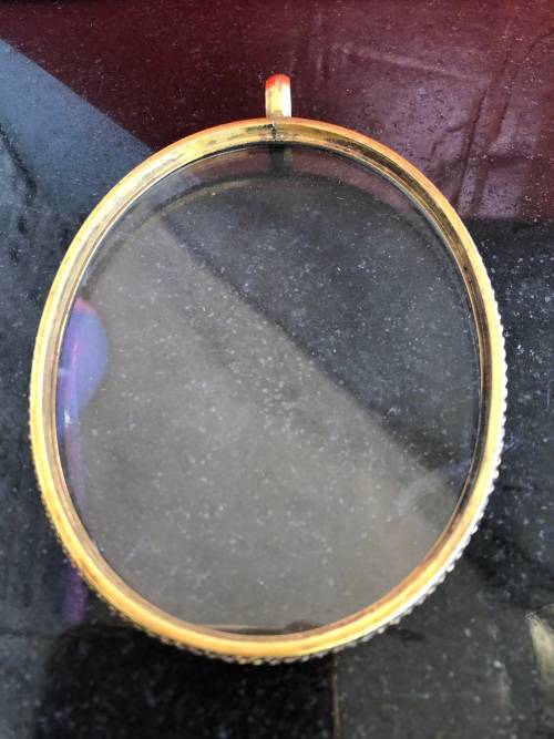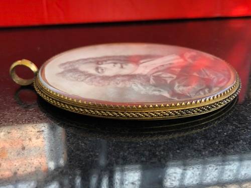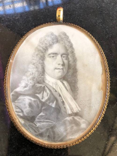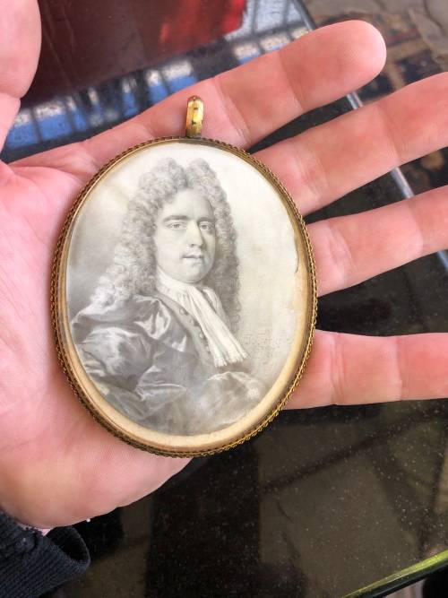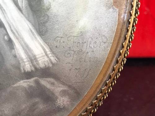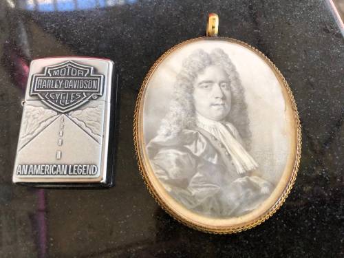 AMAZING FIND - LARGE GEORGIAN GLAZED AND GILDED ENGRAVED HANGING TRAVELLING PHOTO FRAME WITH A MEZZOTINT OF F. FORSTËR DELIN DATED 1711 - ZIPPO IS FOR SIZE REFERENCE AND IS NOT INCLUDED