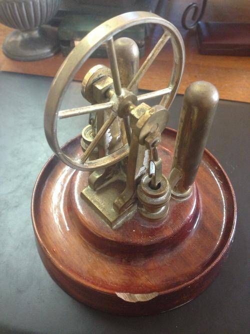 An amazing large brass model of a double piston engine that has moving parts and was done by hand