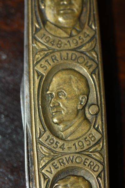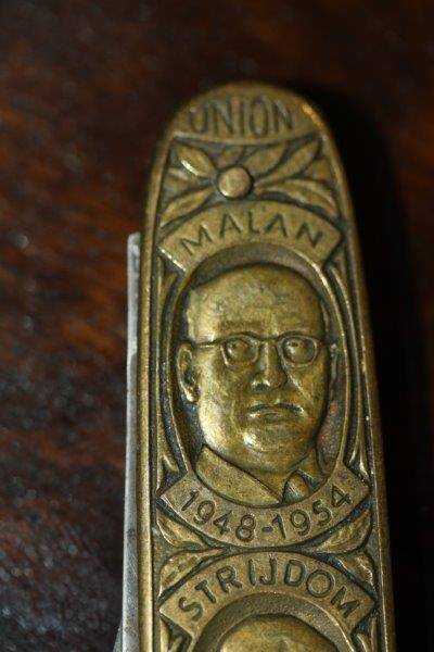FOR THE SERIOUS KNIFE COLLECTOR, THIS 1910 - 1960 UNION POCKET KNIFE IS REALLY VERY NICE!!! PRESIDENT BOTHA; PRESIDENT SMUTS; PRESIDENT HERTZOG; PRESIDENT MALAN; PRESIDENT STRIJDOM AND PRESIDENT VERWOERD!!! THE KNIFE IS MADE BY JOWIKA SOLINGEN GERMANY. THIS IS QUITE A SCARCE KNIFE AND A SERIOUS PIECE OF SOUTH AFRICAN HISTORY. THE KNIFE HAS SEEN SOME WEAR AND TEAR SO PLEASE VIEW THE PICS VERY CAREFULLY FOR MORE DETAILS AND THE GENERAL CONDITION. STANDARD POSTAGE AND PACKAGING WILL BE R 50.00 COUNTER TO COUNTER OR PLEASE COLLECT IN EDENVALE AT NO CHARGE!