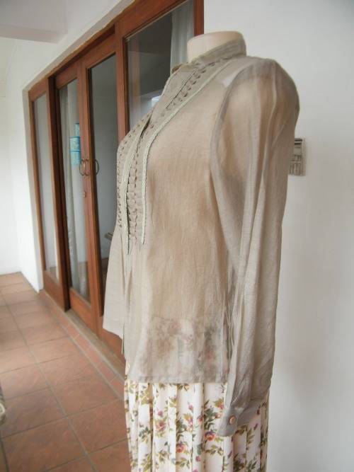 Amazing raw silk and polyester top in ecru colour by SANPIGALLE.Japan.Size 33/9 Japanese collar