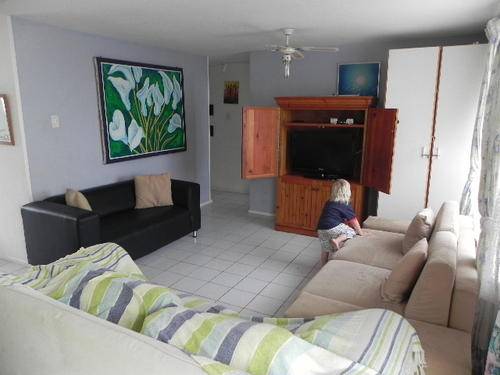 This unit, available for the entire December holidays comes fully equipped with washer, micro, stove & oven, all cutlery, glassware, bedding, table and chairs, dbl sleeper couch, settees, main bed with dbl bed and tv, 2nd bed has 1 dbl bed plus 1 single. Unit can sleep 5 comfortably. Imagine waking up to the sounds of the sea, or sitting on the patio watching the dolphins, letting the kids swim in the crystal clear pool right outside your doorstep, having the car locked away in the garage, going for a walk to the beach - only 89 steps awat - less than 100m and going for your surf swim in protected beaches... imagine... from kettle to toaster to washing machine to braai (and theres even one at the pool) to absolute everytning to make the beach holiday quite perfect... only bring your Dstv card.
