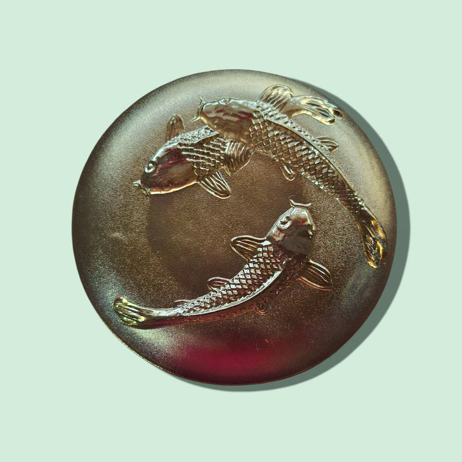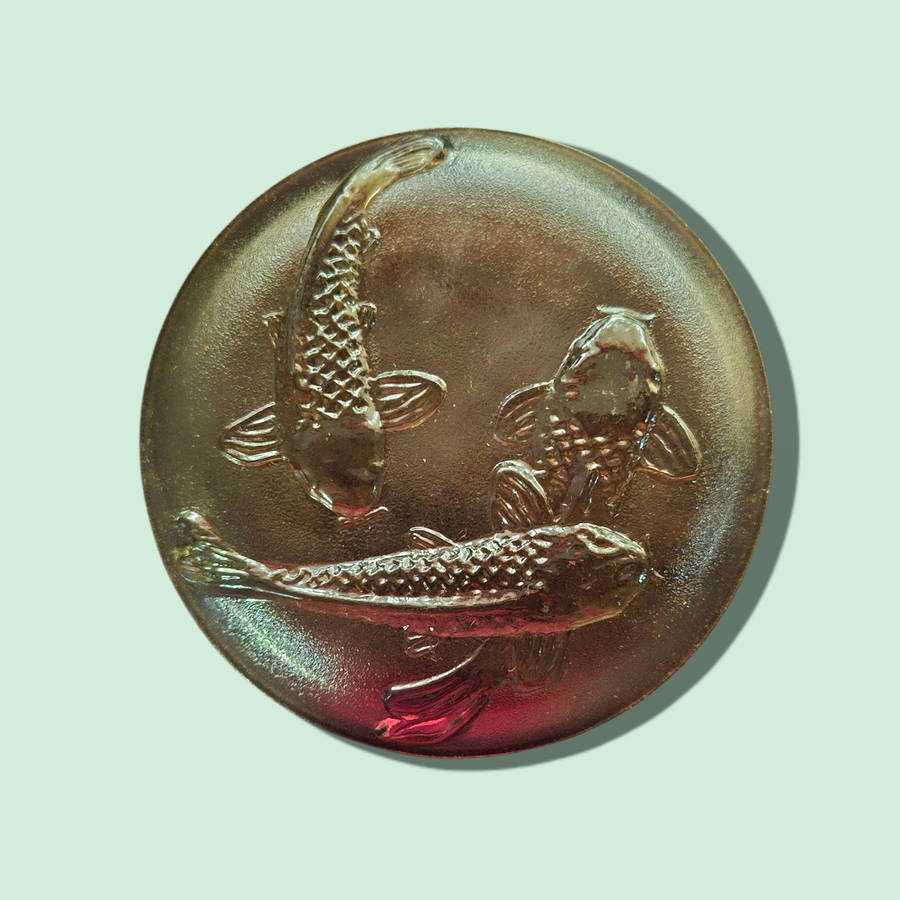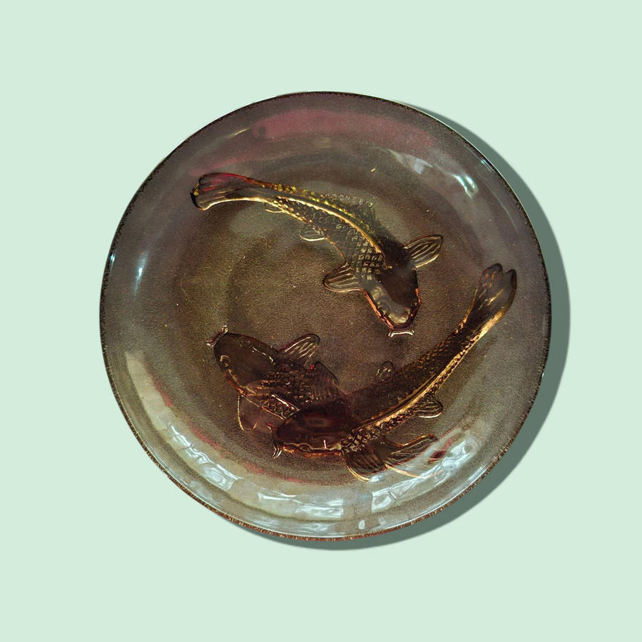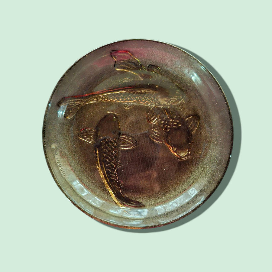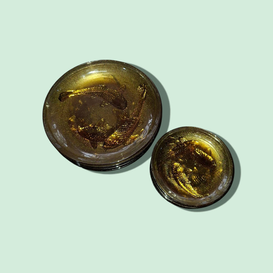 | 🏷 Amber Glass Salad And side Plates 3D Decorative Embossed Koi Goldfish KIG Indonesia six of each |