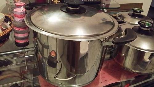 Pre Owned 3 pot AMC set plus 1 free large AMC pot but the large one has different handles to the set.