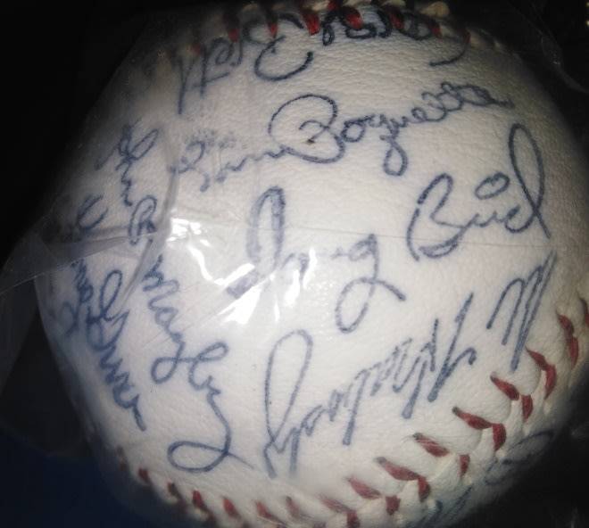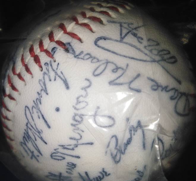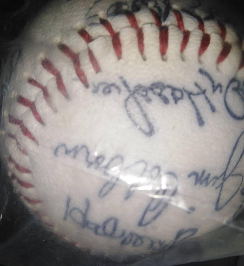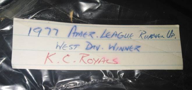 This baseball is signed with signatures from K C Royals, which was, according to the note included, the American League runner up and winner of the West Division in 1977.