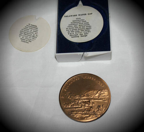 -American Delaware water Gap Bronze? Medallion in box -55g 51x3.5mm CONDITION: All Items SOLD as FOUND - -Please see ALL IMAGES below |