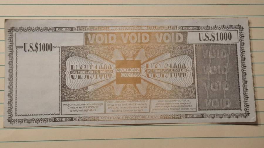 American Express $1000 Traveller Gift Cheque American Express $1000 Traveller Gift Cheque