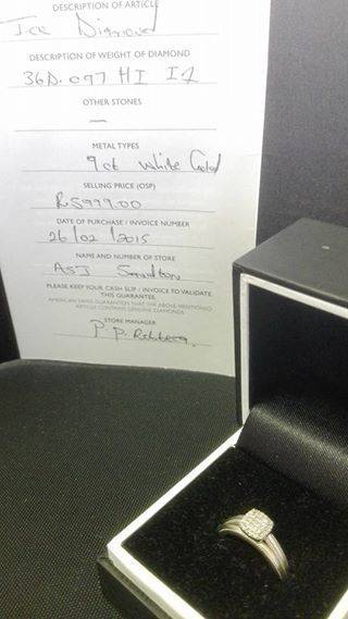 American swiss 9ct gold ring with 36 small diamonds and a 9ct band