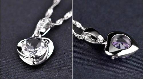 Amethyst Crystal Love Heart Shape Necklace 925 Sterling Silver Plated