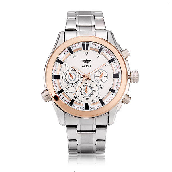 AMST AM3007 Men Business Casual Calendar Stainless Steel Quartz Watch