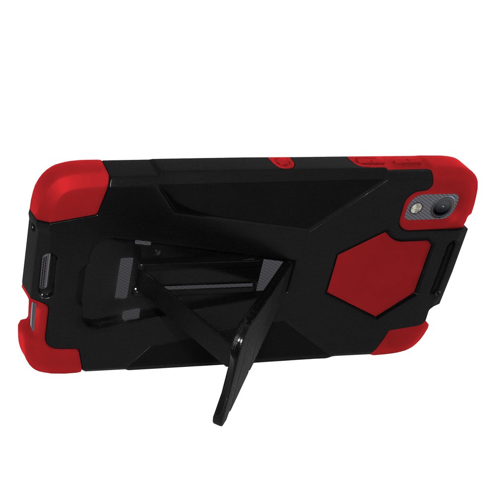 The AMZER Dual Layer Hybrid Case with Kickstand for BlackBerry DTEK50 providesoptimal protection for your BlackBerry DTEK50. This must-have features notone, but two layers of advanced hybrid protection! Layer 1 is a durablesilicone cover that is a perfect fit over your BlackBerry DTEK50. Layer 2 isan impact resistant hard shell that easily wraps around the silicone layer.All ports are easily accessible for instant operation and all buttons arecovered by raised silicone. The heavy-duty hard case features a kick-stand forconvenient placement on a desk or table for media viewing or video calls. Thehybrid case features a rugged design for advanced protection for your activelifestyle. This cover is compatible for BlackBerry DTEK50.