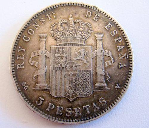 AN 1898 SPANISH  SILVER 5 PESETAS