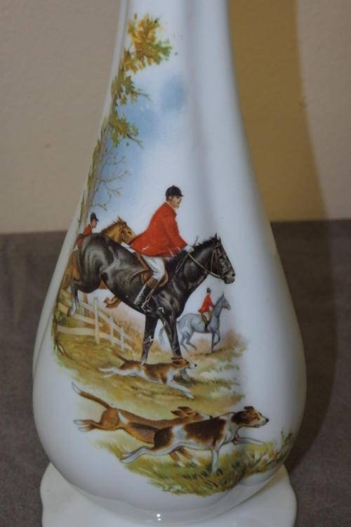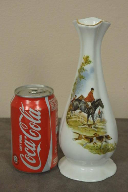 THIS AMAZING AND RARE IRISH MADE "ROYAL STUART" "TARA HALL" FINE BONE CHINA VASE HAS A GORGEOUS HUNTING SCENE TRANSFER PRINT AND IS FINISHED WITH A GOLD RIM. THE VASE IS 21.5cm TALL AND HAS ABSOLUTELY NO CHIPS OR CRACKS IN IT. THIS IS A BEAUTIFUL VASE.