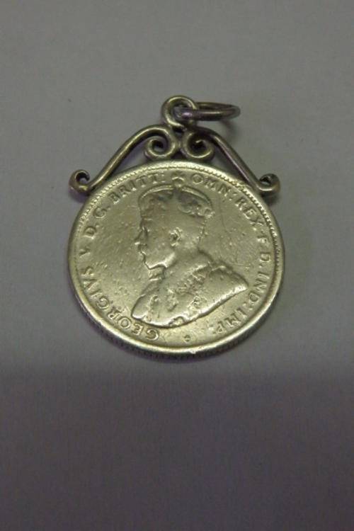 AN AMAZING ANTIQUE 1914 SILVER AUSTRALIAN 1 SHILLING COIN PENDANT WITH KING GEORGE V ON THE OBVERSE