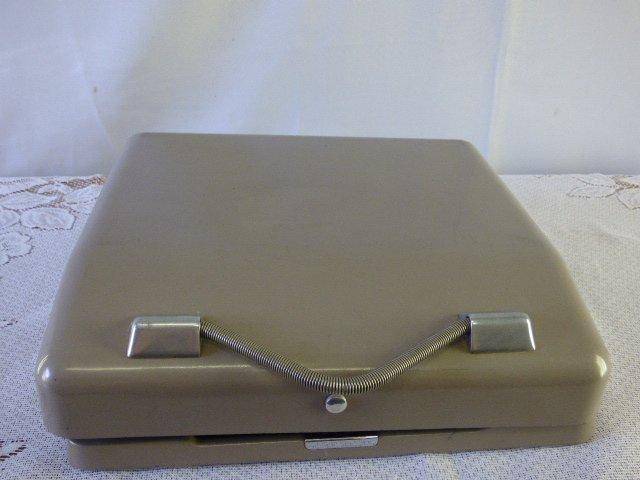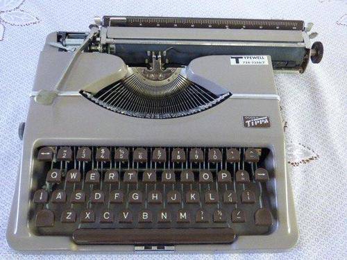 THIS AMAZING ANTIQUE GERMAN MADE (1955) PORTABLE GOSSEN TIPPA, TYPEWELL TYPEWRITER IS IN ITS ORIGINAL HARD CARRY BOX AND IS A WONDERFUL EXAMPLE OF THE TYPEWRITERS OF THE MIDDLE 1900's. THE TYPEWRITER IS IN WORKING CONDITION BUT WOULD NEED A NEW RIBBON IF YOU WERE WANTING TO USE IT.