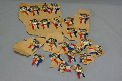 THIS AMAZING COLLECTION OF 23 VINTAGE "ROYAL VISIT" (KING GEORGE VI AND QUEEN ELIZABETH AND THE THEN PRINCESS ELIZABETH AND PRINCESS ANNE) COLLAR PINS DATING BACK TO 1947 (WHEN SOUTH AFRICA WAS STILL A UNION) HAVE BEEN LOCKED IN A STORE ROOM FOR ALL THESE YEARS. THE PINS HAVE A BLACK AND WHITE PHOTO OF THE KING AND QUEEN IN THE CENTRE WITH THE BRITISH FLAG COLOURS AND THE THEN UNION OF SOUTH AFRICA FLAG COLOURS AS THE RIBBON ON THE PINS. IF YOU ARE A COLLECTOR OF BRITISH MEMORABILIA, THE CHANCES ARE YOU DON'T HAVE THESE PINS.