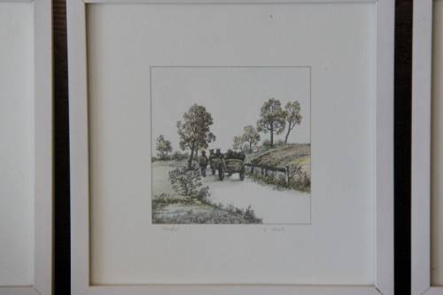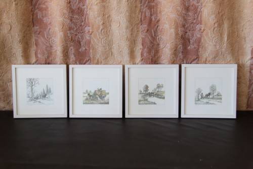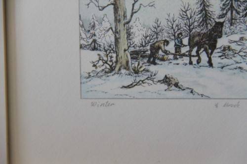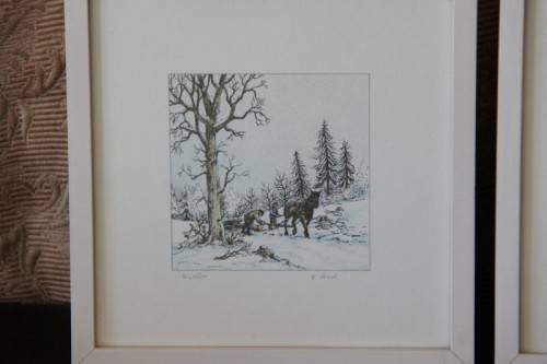 THESE FOUR INCREDIBLE FRAMED ETCHINGS ARE BEAUTIFULLY TRANQUIL. THE ETCHING PRINTS HAVE BEEN FRAMED BEHIND GLASS IN BEAUTIFUL WHITE FRAMES. THE ETCHINGS EACH MEASURE 16,5cm WIDE x 16,5cm HIGH. EACH ETCHING PRINT DEPICTS A DIFFERENT SEASON OF THE YEAR AND THERE IS A SELECTION OF WINTER, SUMMER, FRUHJAHR (SPRING) AND HERBST (AUTUMN). PLEASE VIEW THE PICS CAREFULLY TO FULLY APPRECIATE THESE TRULY STUNNING ETCHING PRINTS AND TO CONFIRM THE CONDITION.