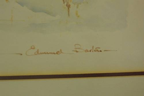 FROM THE INTERNET: Edmund Barton is an international artist producing artwork covering a vast range of subject matter and styles. Based in Gordons Bay near Cape Town in South Africa he operates his own galleries and most of his works are commissions. On the following pages you will see a cross section of paintings for sale and the artist welcomes commissions on any of the subjects shown.