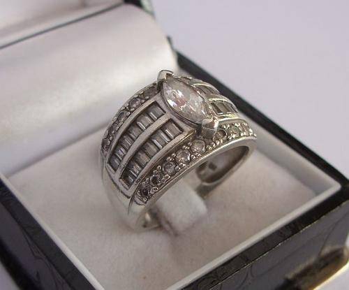 AN AMAZING SOLID STERLING SILVER RING SET WITH SOOO MANY FACETED STONES !! AMERICAN SWISS !!!