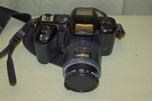 THIS AMAZING VINTAGE PENTAX Z-70 35mm CAMERA WITH BUILT IN "AUTO" FLASH AND A 35 TO 80mm 1:4 -5.6 PENTAX LENS IS IN EXCELLENT CONDITION AND ALTHOUGH I WAS NOT ABLE TO TEST THE CAMERA AS I DO NOT HAVE FILM, ALL THE "ELECTRICS" WORK AND THE BUTTONS ALL SEEM TO FUNCTION PROPERLY (SEE PICS). THE LENS ALSO HAS A LENS COVER AND THE CAMERA IS IN A GOOD SIZE CAMERA CASE.