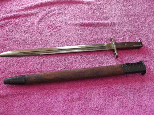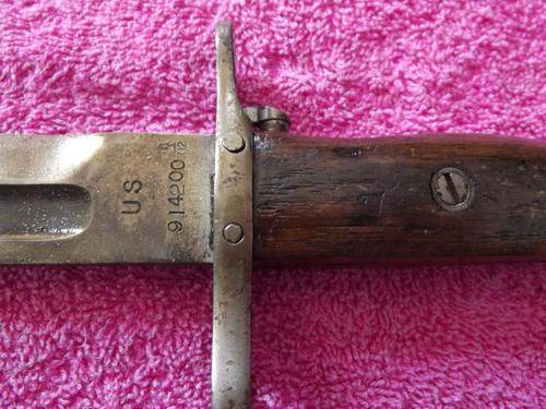 On offer at A Crazy R1 Start is a World War I American Springfield Bayonet, 1905 - Dated 1918. The bayonet has Markings- US 914200 S A ( Springfield Armory Produced) with makers mark and date. Length 52cm. Markings are clear, a spearpoint blade with upper false edge as seen on photos. A super Fiend.