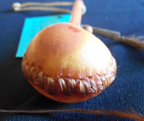 AN AUTHENTIC AMERICAN INDIAN RATTLE PLUS LEATHER DREAM CATCHER AND A INDIAN CHIEF ORNAMENT