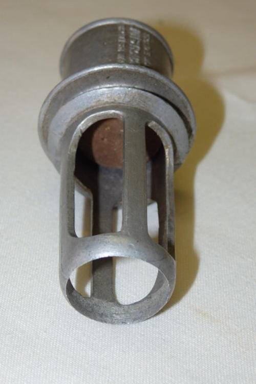 THIS AWESOME ANTIQUE (c1930's) BRITISH MADE JUISTRACTOR STILL HAS ITS ORIGINAL CORK "LID" AND MEASURES 7.5cm LONG. THE UNIT IS PUSHED ONTO THE FRUITE (PREDOMINANTLY CITRUS) AND THE JUICE CAN THEM BE SQUEEZED OUT. THE UNIT CAN ALSO BE USED AS A CORER.