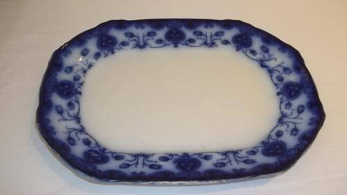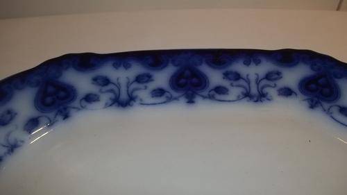 FORD AND SONS (F & SONS HALLMARK) OF BURSLEM ENGLAND MANUFACTURED THIS AMAZING FOOD PLATTER BETWEEN 1908 AND 1938. THE PLATTER IS A REALLY GOOD SIZE AND QUITE SOLID PIECE OF POTTERY AND IDEAL FOR A LARGE FAMILY. THERE ARE SOME USAGE WEAR AND TEAR SCUFFS AND CHIPS DUE TO THE AGE OF THIS MAGNIFICENT PIECE, BUT IT IS STILL A REALLY AMAZING PLATTER. THE PLATTER MEASURES 35.5cm X 27.5cm AND HAS BEEN BEAUTIFULLY GLAZED IN BLUE (TIN) OXIDES.