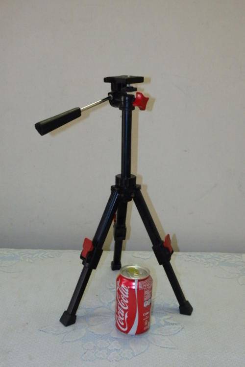 THIS AWESOME IIC OF TAIWAN BLACK AND RED COMPACT PORTABLE AND EXTENDABLE CAMERA STAND TRIPOD HAS ADJUSTABLE LEGS WITH LOCKING MECHANISMS AS WELL AS AN ADJUSTABLE CENTRE COLUMN. THE TRIPOD ADJUSTS FROM 25cm TALL TO 45cm TALL WITH EXTENDED. THERE IS MINOR AGE AND USAGE RELATED WEAR AND TEAR. THIS IS THE PERFECT PORTABLE CAMERA TRIPOD.