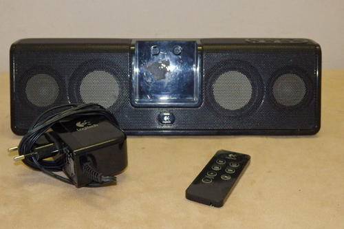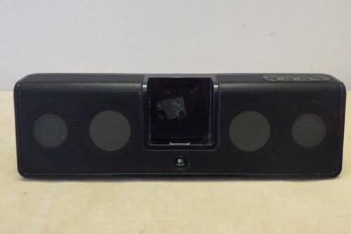THIS AWESOME BLACK LOGITECH (MODEL MM50) DOCKING STATION HAS IT'S ORIGINAL REMOTE CONTROL AND POWER CABLE. THE DOCKING STATION HAS SOME WEAR AND TEAR AND SCUFF MARKS AND IS IN WORKING CONDITION. THE DOCKING STATION IS THE IDEAL UNIT TO TAKE WITH YOU WHEN YOU GO CAMPING OR YO USE OUTDOORS ETC. THE UNIT IS 32.5cm LONG x 10cm HIGH. THE POWER CABLE IS A LITTLE LOOSE, BUT ON SURE IT CAN BE FASTENED.