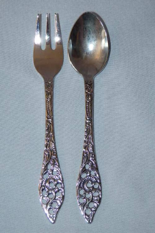 THIS AWESOME BOXED 12 PIECE DUTCH MADE "EBCO" ELWAZETTA CHROME PLATED TEASPOON AND CAKE SET CONSISTS OF SIX OF EACH CAKE FORKS AND TEASPOONS. THE VERY PRETTY ORNATE DETAILING ON THE HANDLES MAKE THEM SUITABLE WITH JUST ABOUT ANY PORCELAIN TEA OR COFFEE SET AT YOUR NEXT TEA PARTY. THE CAKE FORKS AND TEASPOONS ARE IN GREAT CONDITION WITH MINIMAL AGE AND USAGE RELATED WEAR AND TEAR.