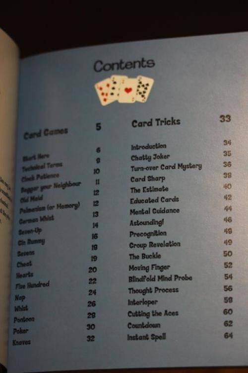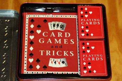 This is an AWESOME playing card set that is complete with 2 decks of playing cards and a book with instructions for loads of different card games and tricks!!! It makes for a convenient to pack and stow travel set that will really be a lot of fun on vacation, or to use in the home or at a friend. It is in great condition and has never actually been used.