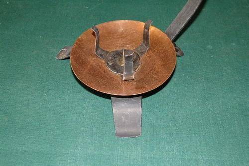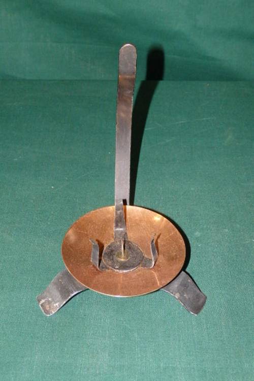 THIS AWESOME COPPER AND BLACK METAL CANDLE HOLDER WITH A CARRY HANDLE MEASURES 16cm TALL AND IS 12.5cm ACROSS THE COPPER BASE. THE BASE HAS "CLASPS" THAT HOLD THE CANDLE AND STOP IT FROM FALLING OVER AND THE HANDLE IS DESIGNED WITH A CURVE AS TO KEEP YOUR HAND AWAY FROM THE FLAME.