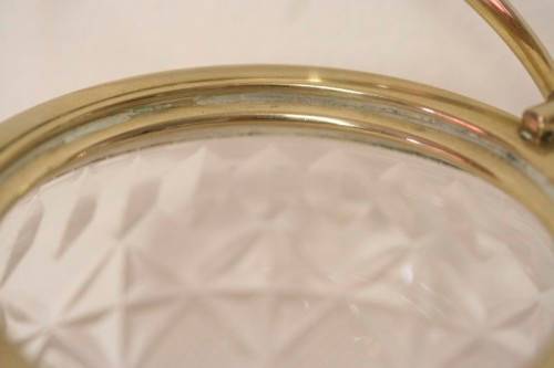 This lovely crystal and EPNS ice bucket is perfect for a whiskey tray or even a drinks trolley. This beautiful ice bucket has an EPNS silver handle and lid (the silver plate has worn off revealing the brass) but it is still very usable and looks good. The ice bucket measures 11cm across x 14cm high. There are no chips or cracks in the crystal and there is minor wear and tear on the handle and lid. Please view the pics carefully to fully appreciate this awesome ice bucket and to confirm the condition.