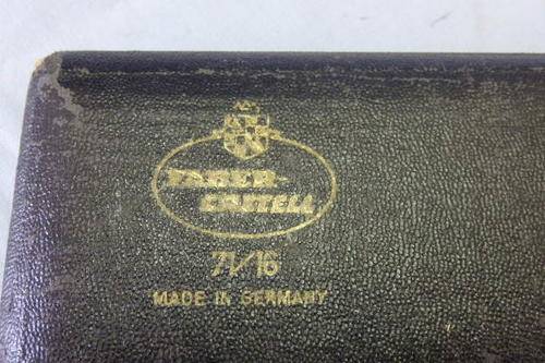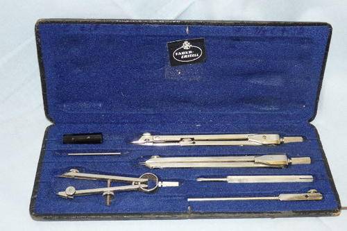 THIS AWESOME GERMAN MADE FABER AND CASTELL (MODEL 71/16) DRAFTSMAN/ TECHNICAL DRAWING SET IN A BLACK HARD CASE IS GOOD CONDITION AND THE IDEAL SET FOR SOMEONE THAT IS EITHER A DRAFTSMAN, ARCHITECT OR FOR A STUDENT. THE HARD BOX HAS A PIN ON THE SIDE OF THE BOX THAT ENSURE IT DOESN'T OPEN ACCIDENTLY. THERE IS SOME AGE AND USAGE RELATED WEAR AND TEAR, BUT IS STILL AN AWESOME SET.