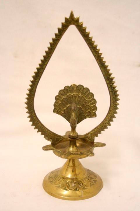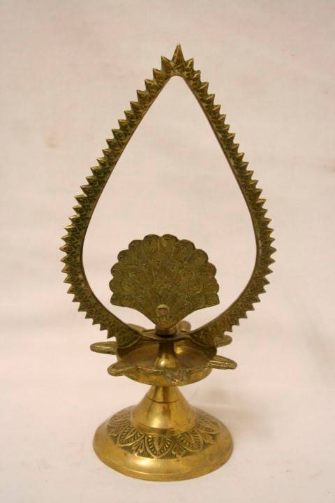 This awesome Indian made solid brass Diya oil lamp with a peacock motif in the centre is 23cm high x 12cm wide and has lovely detailing through out the lamp. A Diya, diyo, deya, divaa, deepa, deepam, or deepak is an oil lamp used in the Indian subcontinent, notably India and Nepal, usually made from clay, with a cotton wick dipped in ghee or vegetable oils. Diyas are native to the Indian subcontinent often used in Hindu, Sikh, Jain and Zoroastrian religious festivals such as Diwali or the Kushti ceremony. Clay diyas are often used temporarily as lighting for special occasions, while diyas made of brass are permanent fixtures in homes and temples. Please view the pics carefully to fully appreciate this aweso0me solid brass Indian Diya oil lamp and to confirm the condition. Please view the shipping options or request courier costs prior to purchasing any of our products.