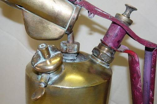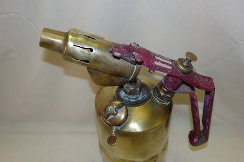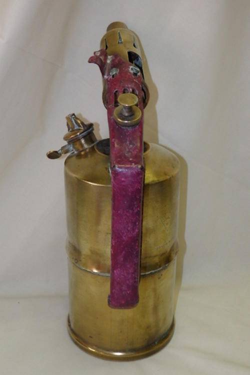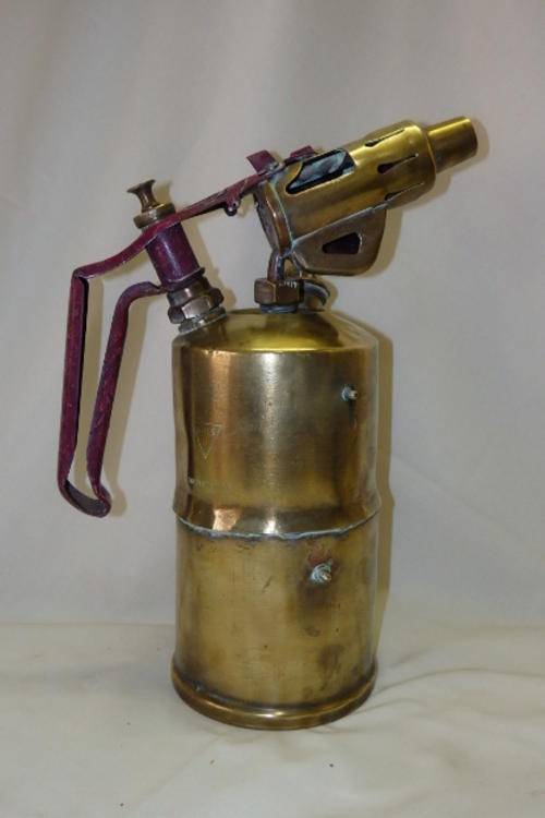 THIS AWESOME AND UNUSUAL LARGE VINTAGE AB OPTIMUS OF SWEDEN No. 431 & SH &S OF ENGLAND BRASS PARAFFIN BLOW LAMP IS A COMBINATION OF BITS OF BOTH OF THE MANUFACTURERS. THE BLOW LAMP IS 32cm TALL AND 23cm FROM SPOUT TO HANDLE. THE BLOW LAMP IS ORNAMENTAL.
