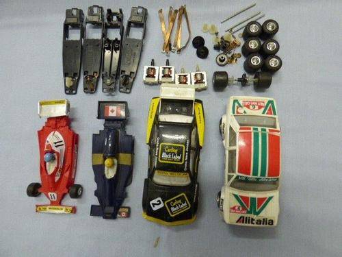 AN AWESOME VINTAGE POLISTIL, SLOT CAR SCALEXTRIC TRACK WITH CARS, SPARES TO BUILD CARS, TRACKS, BARRIERS, RACE STARTER, AND CONTROLS. THIS FABULOUS SET IS EVERY BOYS DREAM TO OWN AND SET UP, THIS IS A LARGE TRACK AND WILL GIVE YOUNG AND OLD SO MUCH FUN RACING. EVERYTHING IS IN WORKING CONDITION, ONLY ONE CAR IS BUILT, THE OTHERS HAVE THE SPARES TO BUILD YOURSELF.