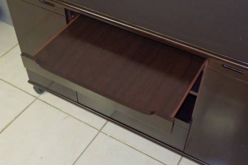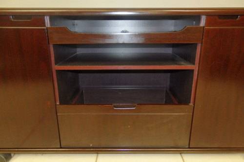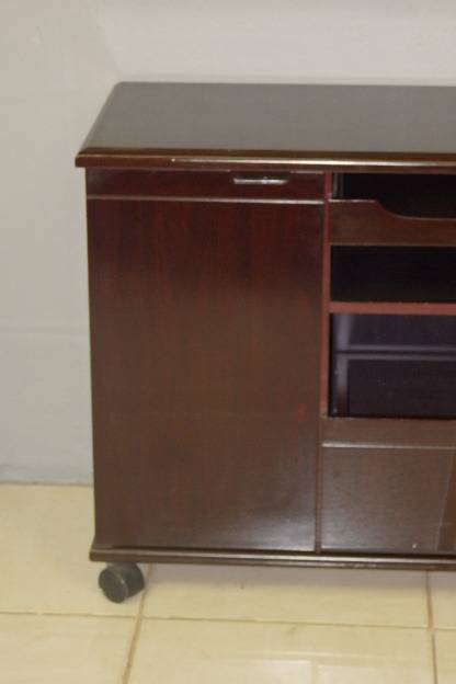 THIS AWESOME "MOBILE" CHERRY WOOD VENEER TV/ PLASMA UNIT WITH TWO CUPBOARDS, A LARGE DRAWER AND PULLOUT SHELF MEASURES 1200mm LONG x 400mm WIDE x 660mm HIGH. THE BACK OF THE CABINET IS EQUIPPED WITH OUTLETS FOR WIRING. THE UNIT IS IN GREAT CONDITION AND HAS MINIMAL AGE AND USAGE RELATED WEAR AND TEAR. THERE IS A FINE SCRATCH ON THE TOP OF THE UNIT.