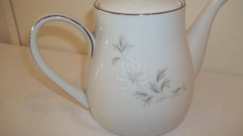 THIS EXQUISITE NORITAKE OF JAPAN LARGE PORCELAIN TEAPOT IS IN THE STUNNING ROWENA SERIES (6322). THE BEAUTIFUL DESIGN IS FINISHED WITH SILVER GILDING AND THE TEAPOT IS IN PRISTINE CONDITION WITH NO CRACKS, OR CHIPS. THE TEAPOT MEASURES 23cm ACROSS (HANDLE TO SPOUT) AND IS 16.5cm TALL.