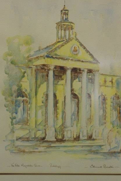 THIS AWESOME ORIGINAL WATERCOLOUR PAINTING OF "THE OLD MAGISTRATES COURT - BOKSBURG" BY INTERNATIONAL ARTIST EDMUND BARTON (LIVING IN SOUTH AFRICA) IS PART OF HIS HISTORICAL SOUTH AFRICAN BUILDING COLLECTION WHICH I BELIEVE WAS A SPECIFICALLY COMMISSION. THE PAINTING IS FRAMED BEHIND NON-REFLECTIVE GLASS IN A SOLID WOODEN FRAME. THE PAINTING IS IN BEAUTIFUL CONDITION AND MEASURES 570mm WIDE x 675mm HIGH. HIS APPLICATION OF COLOURS AND ATTENTION TO DETAILING MAKES THIS ENTIRE COLLECTION A MASTER PIECE. THE PAINTING IS SIGNED AND THE TITLE INSCRIBED ON THE PAINTING. YOU ARE WELCOME TO VIEW THE COLLECTION AT OUR EDENVALE BRANCH.