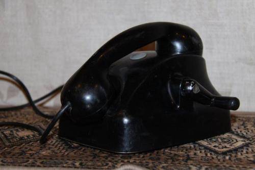 A FABULOUS VINTAGE BLACK BAKELITE HAND CRANKED DESK "EXCHANGE" TELEPHONE. THE TELEPHONE DOES NOT HAVE A DIALER AND ONE WOULD HAVE HAD TO CONTACT AN OPERATOR TO ESTABLISH A CONNECTION. THE PHONE CASING IS MADE OUT OF BAKELITE AND IS IN GOOD CONDITION FOR ITS AGE. THE PHONE MEASURES 13cm x 21cm x 15cm HIGH. THERE IS SOME AGE RELATED WEAR AND TEAR, BUT IT IS TO BE EXPECTED. THIS WILL LOOK GREAT ON DISPLAY IN AN OFFICE OR HOME STUDY/READING ROOM.