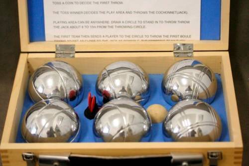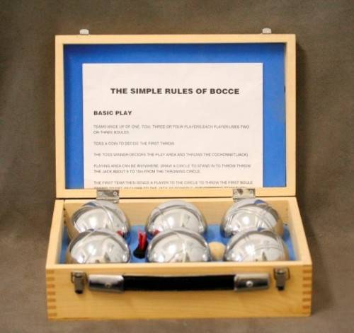 This awesome set of six chrome Chinese Boule (Bocce) balls comes in a lovely wooden case with instructions of the game. With summer here it is something the whole family can join in for some outdoor fun.The balls have some wear and usage related scuffs. The box measures 19cm x 28cm x 9cm hig, each ball weighs roughly 712 grams. Please view the pics carefully to fully appreciate this awesome Boule set and to confirm the condition.