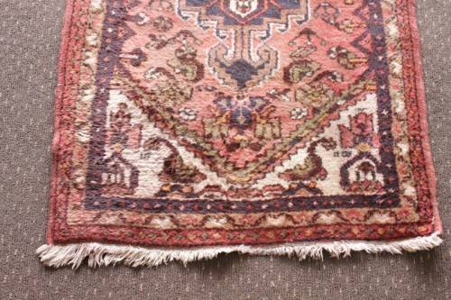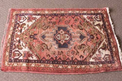 This awesome vintage/ antique? hand dyed Persian carpet with red and earthy tones is the ideal carpet in front of a wood fireplace or front door etc. The carpet measures roughly 127cm long x 80cm wide. The carpet/ rug has age and usage related wear and tear and has a wonderful vintage look and feel. If you are wanting an older carpet with old world charm, then this carper is ideal. Please view the pics carefully to fully appreciate this fabulous old original Persian carpet and to confirm the condition.